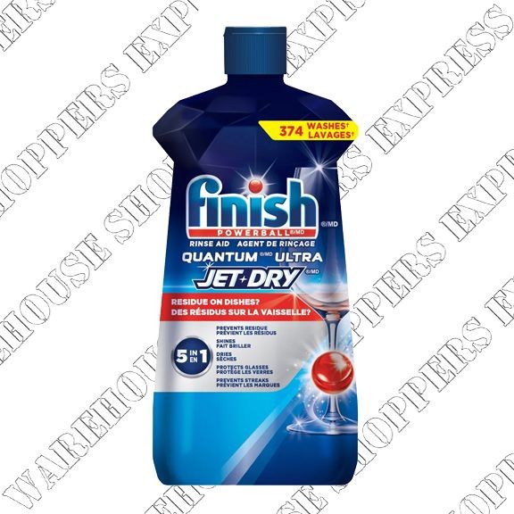 No matter the detergent, your dishwasher might leave your dishes wet and your glasses covered with spots. Thanks to its powerful formula, Finish® Quantum® ULTRA Jet-Dry® Rinse Aid dries plastic better and prevents water spots for a sparkling clean shine.